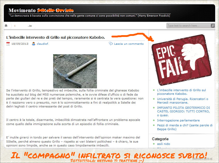 Così mentre il nostro senatore Lucidi si recava al consiglio comunale straordinario convocato nel nostro capoluogo Terni, città delle acciaierie e degli innamorati, e mentre si chiudevano le campagne elettorali pentastellate a Corciano, Passignano sul Trasimeno e Trevi, ed in altri comuni quelle delle liste non certificate di simpatizzanti affini al nostro MoVimento, noi siamo andati a dare manforte ai nostri confinanti, i grandissimi viterbesi a cinque stelle, impegnati con Beppe Grillo per il #tuttiacasatour.